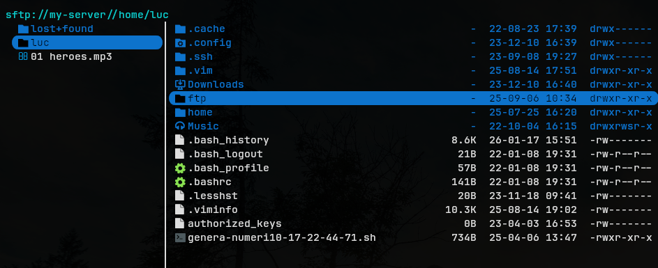 One of Yazi’s most powerful productivity features is native VFS (Virtual File System) support, including SFTP. You can browse a remote server as if it were a local directory β no separate SFTP client needed.